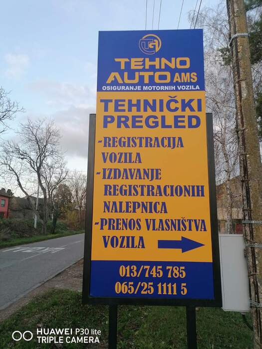 Tehno-auto AMS KOVIN vrši usluge tehničkog pregleda i registracije vozila kao i poslove oko prenosa vlasništva (odjava vozila i kupoprodajni ugovori).Na liniji tehničkog pregleda se vrši izdavanje registracione nalepnice pa se registracija vozila završava u najkraćem mogućem roku. Tehnički pregled Tehno auto AMS KOVIN se nalazi na adresi Vuka Karadžića 106 ( Srpska ulica ) u Kovinu.