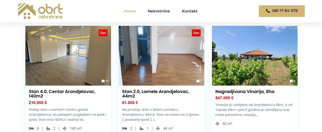 Agencija za nekretnine Aranđelovac, Obrt 2024, vaš je pouzdani partner u svetu nekretnina. Naša agencija se specijalizuje za prodaju kuća i stanova u Aranđelovcu i okolini, nudeći profesionalne usluge posredovanja koje će vam pomoći da pronađete idealan dom ili investirate u pravu nekretninu.