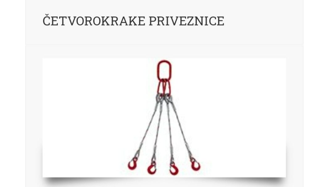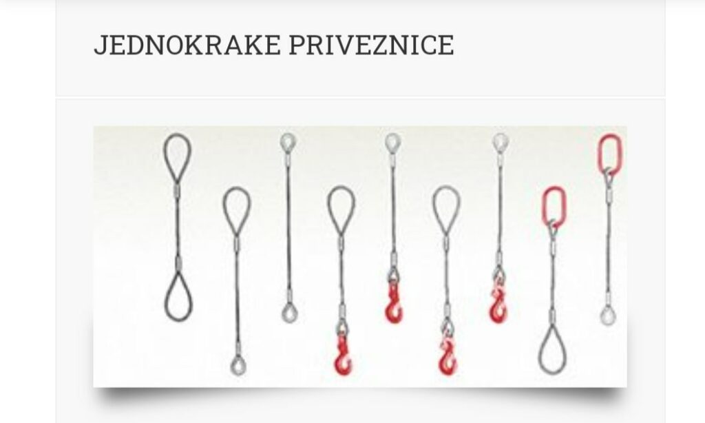 Čelična užad, privezne elemente iz programa UNIS-USHA iz Višegrada B i H., i drugu prateću opremu za utovar, istovar i pretovar tereta.