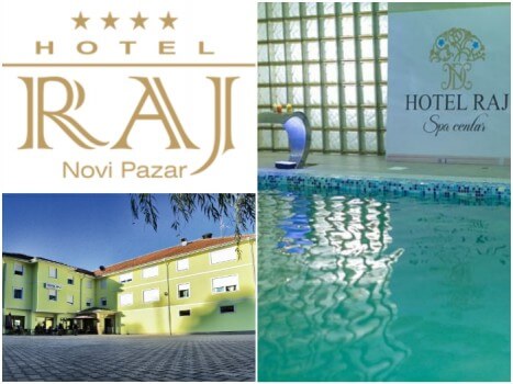Hotel Raj nalazi se u Rajčinovića Banji, svega 5 km od centra Novog Pazara. Veoma mirna okolina, zelenilo i šumoviti kraj čine naše okruženje idealnim za odmor i oporavak čitavog organizma. Stari grad Ras udaljen je oko 6 km od nas, a Sopoćani, Đurđevi Stupovi i najstarija pravoslavna crkva na Balkanu, Petrova crkva, su u krugu od oko sat vremena vožnje.