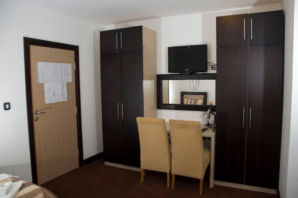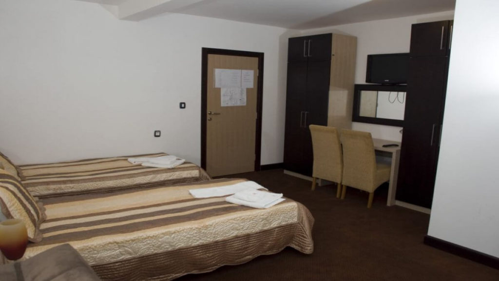 Dva odvojena kreveta, natkase sa lepim lampama na uzglavlju, veliki garderober sa vešalicama i radni prostor sa stolom i stolicom omogući će vam da se ovde sasvim lepo raskomotite i raspremite. Kupatila su moderno uređena, sa tuš kabinom, fenom, peškirima i kompletnim toaletnim priborom, a topli pod je posebno prijatan detalj. Radi vašeg komfora i uživanja, sve sobe su opremljene velikim LCD TV-om sa preko 80 kanala, uključujući sportski i HD paket.