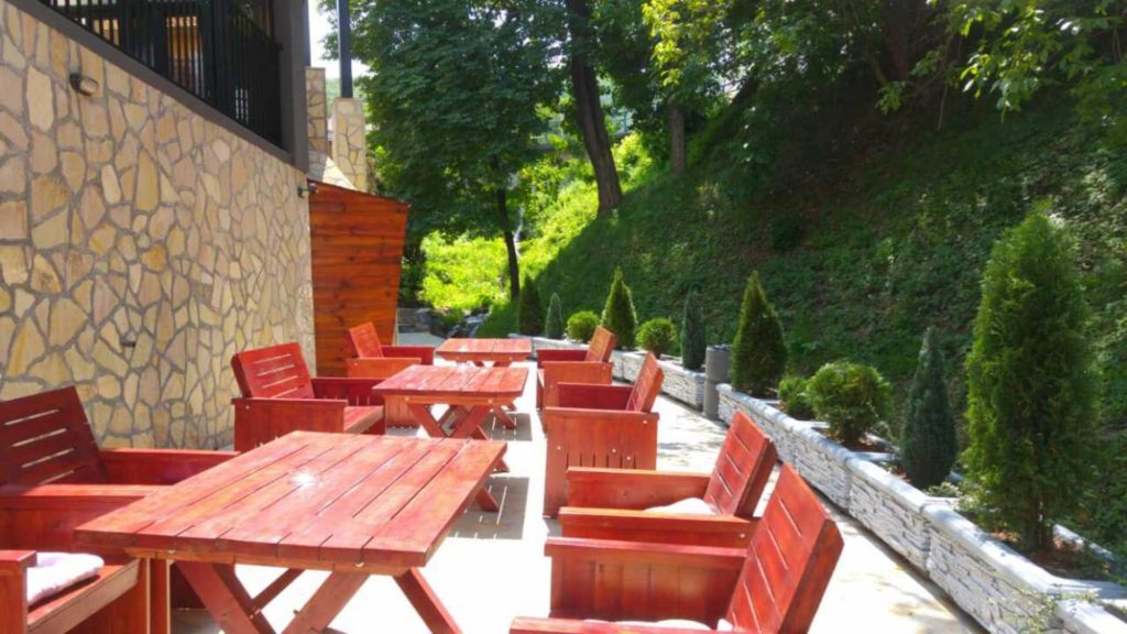 Vaše slobodno vreme možete provesti i na terasama koje opslužuje restoran: terasi na krovu zgrade ili na terasi pored bazena. Na velikoj bašti na trećem spratu uživajte sa voljenom osobom uz laganu muziku i pogledom na potok.