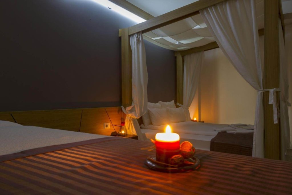 U okviru sobe nalazi se prostrani krevet sa baldahinom,kao i stolovi za masažu,te je pogodna za Nataly Spa pakete.