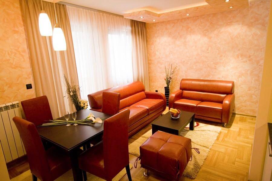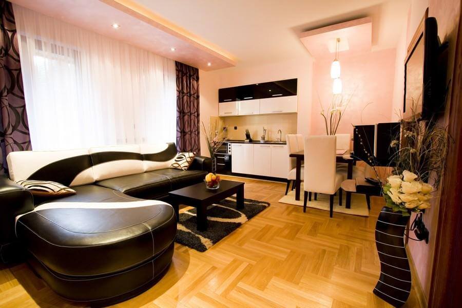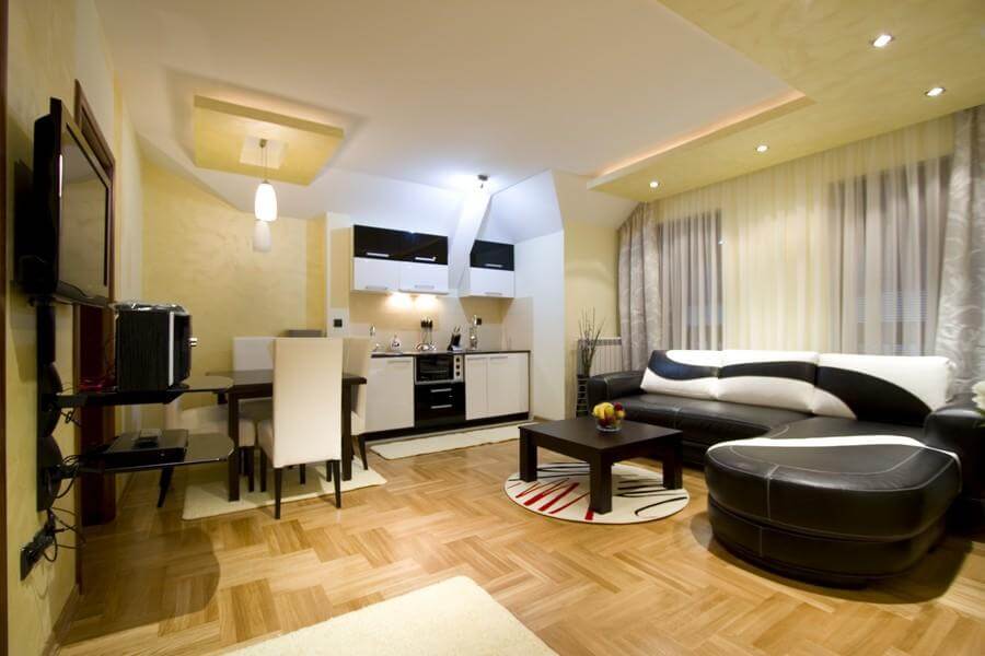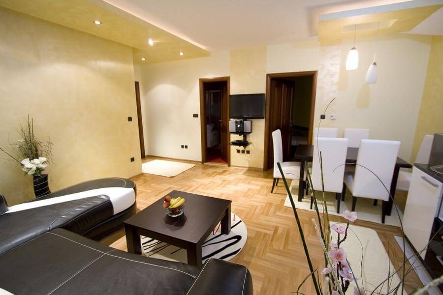 Apartmani Tipa Standard su moderno opremljeni apartmani, koji u svojoj strukturi imaju dnevni boravak sa kuhinjom i trpezarijskim delom, kupatilo, i jednu spavaću sobu.  45m2 (do 4 osobe)